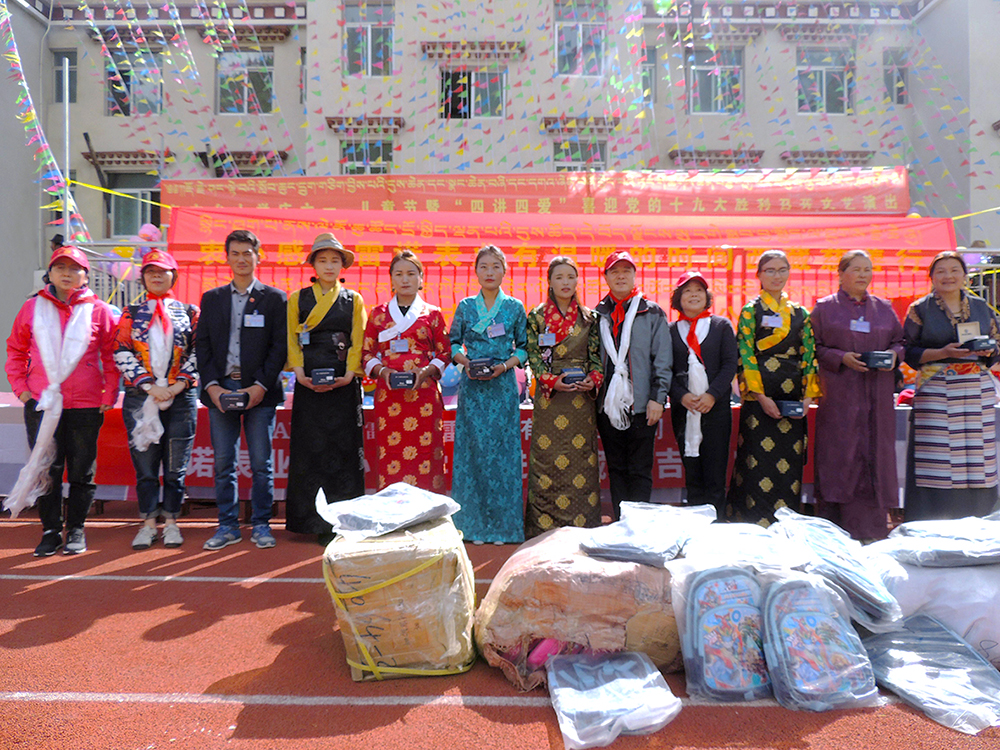 Filled with a festival atmosphere in Duoji elementary school, children celebrate their own festivals with wonderful performances. And even more offered the "song" of the local folk song and dance with grateful and blessing. Raraone group not only celebrate children’s day early, but also bring a salute and sympathy for cadres and local teachers there. Thanks for their selfless dedication, guarding children in silence by giving them love and warm.