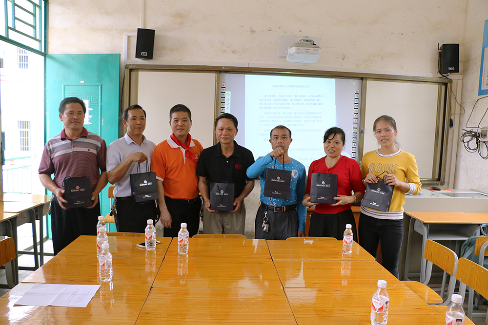 雷諾表愛心小組在總經(jīng)理詹江洲先生的帶領下,從南寧市區(qū)出發(fā),一路上綠水青山風景秀美,但在快要到達同社村的山路上,我們真正見識了九曲十八彎的大山路。經(jīng)過3個多小時的長途跋涉,我們的愛心車輛終于抵達同社村小學,遠遠就看到學校的孩子在校門口等待我們,當孩子們親手為我們系上鮮艷的紅領巾,雷諾表愛心小組的每個成員的使命感愈加強烈。